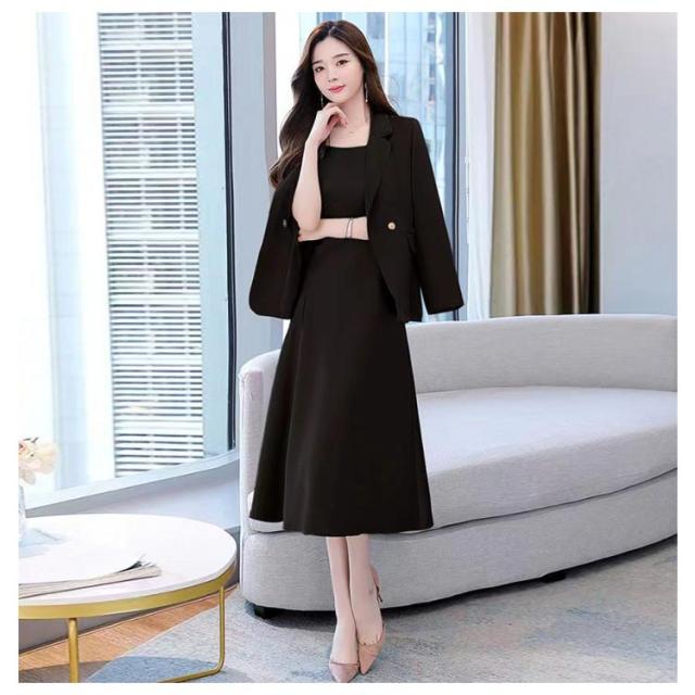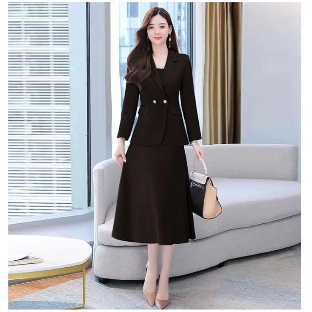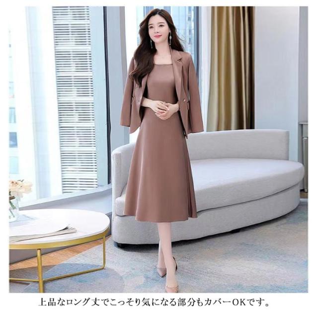 | 首元をきれいに見せる、Vネックジャケット+ワンピース。 シンプルながらも、袖を通すときれいなシルエットを実感いただけると思います。 ワンピースの衿元のUネックはジャケットとの衿開きのバランスにこだわって設定しています。 上品なロング丈でこっそり気になる部分もカバーOKです。 忙しい働く女性・ママにもぴったりなアンサンブルスーツです! | |