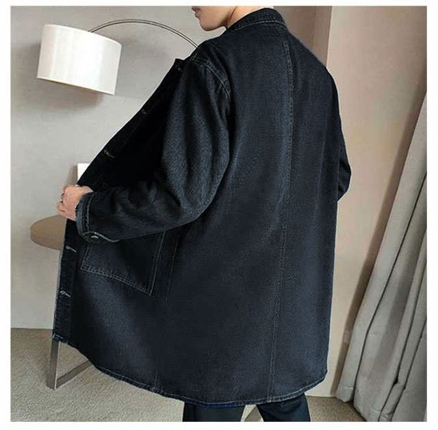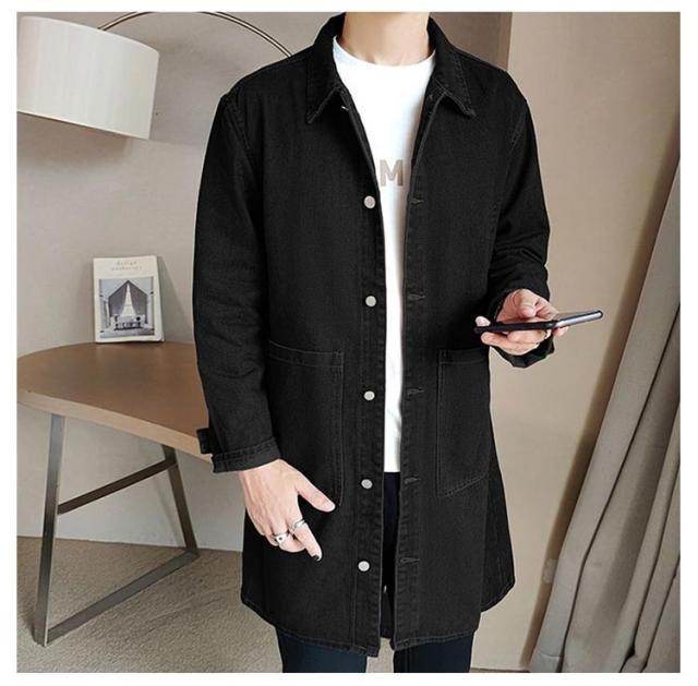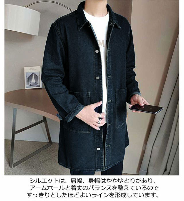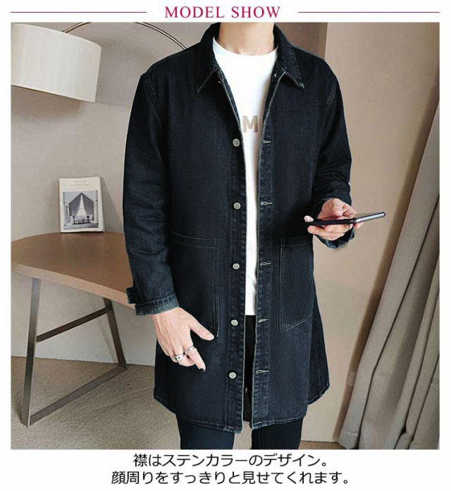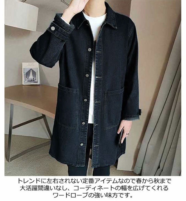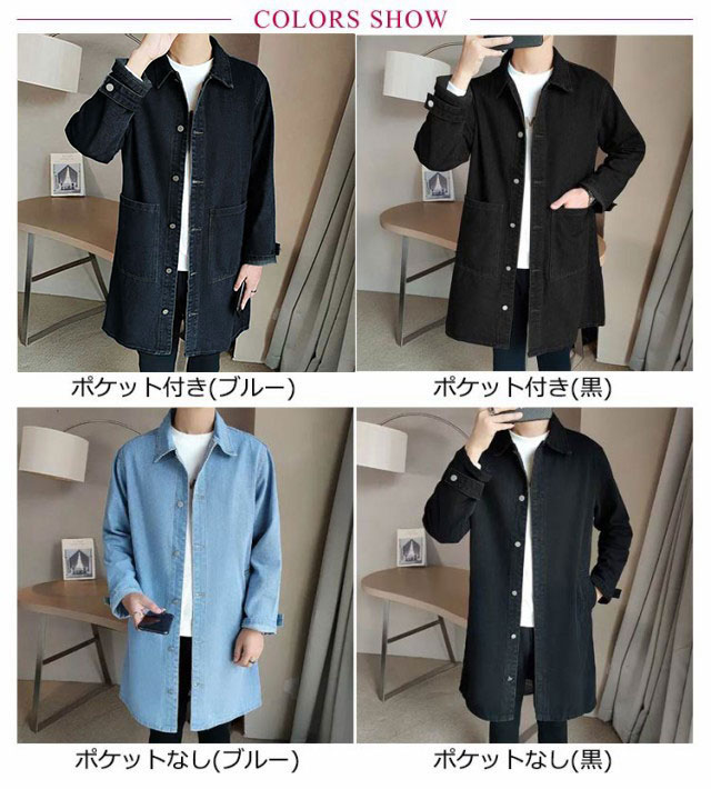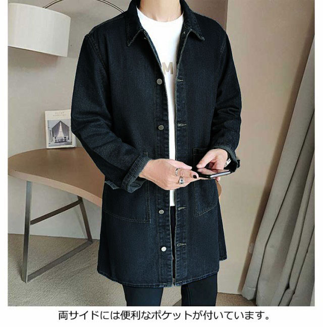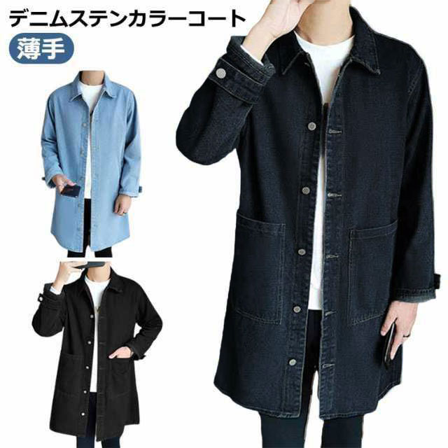 デニムコート メンズ コート 薄手 春コート スプリングコート ロング丈 デニム ステンカラーコート ロングコート 秋 春 アウター 羽織り ジャケット Gジャン ジージャン カジュアル 春服 デニムジャケット ライトアウター 大きいサイズ 黒 ブラック ブルー 【送無】