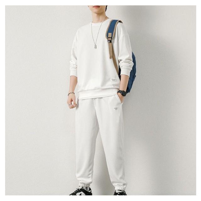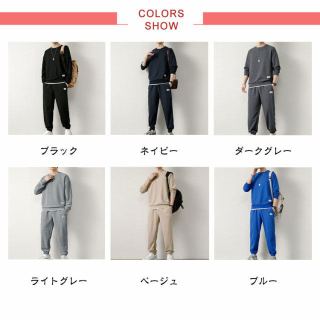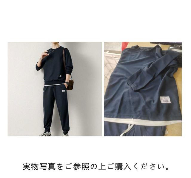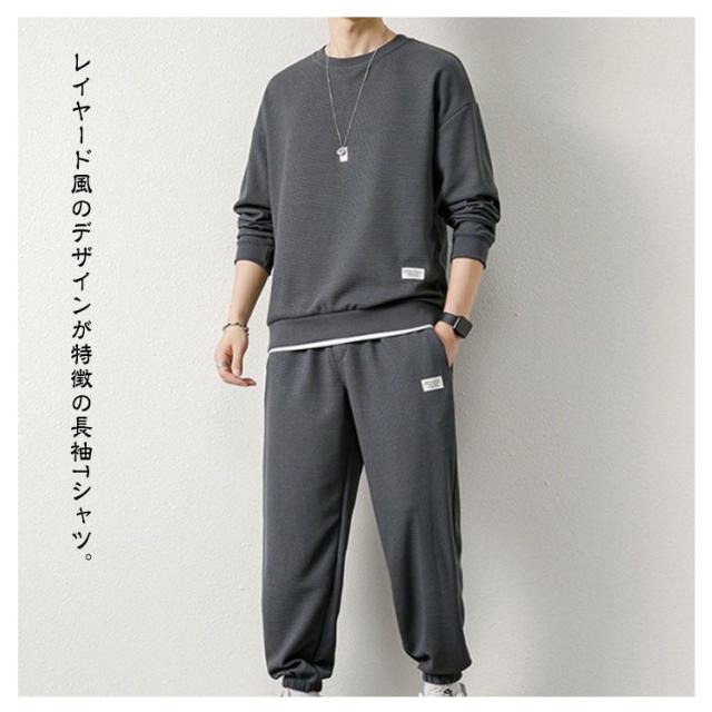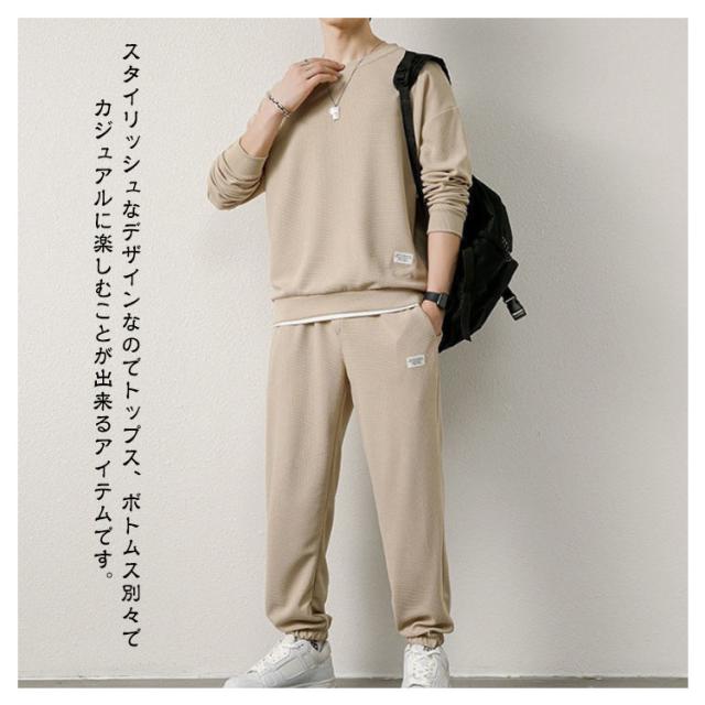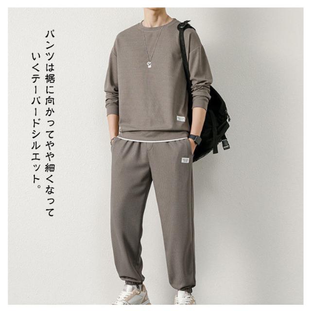長袖 上下セット メンズ トレーナー セットアップ ワッフル生地 長袖tシャツ ロングパンツ 長ズボン 無地 シンプル 裾ゴム 韓国 おしゃれ スポーツウェア トレーニングウェア 運動着 春 秋 冬 部屋着 ルームウェア 学生 大人 送料無料