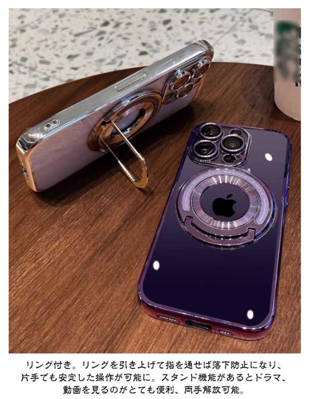 | 【MagSafe対応】【リング付き&スタンド機能】【全5色】 マグネットを搭載し、一瞬でピッタリと高速充電を実現!安定性を持ち、充電器を近づけると高速ワイヤレス充電が実現です。 リング付き。リングを引き上げて指を通せば落下防止になり、片手でも安定した操作が可能に。スタンド機能があるとドラマ、動画を見るのがとても便利、両手解放可能。 衝撃吸収性に優れたTPUを採用し、画面より少しだけ高く設計されたコーナーが全周をカバーしているのであらゆる角度からの落下に対して安心感が増す。 レンズにはカバーが付属なので、有効的にレンズの摩損を防止します。 防塵ネット設計で、携帯電話のスピーカーにほこりが入らないようにしています。 【スタイリッシュな外観】ケースに光沢のある金属の質感が与えられ、より魅力的になります。 | |