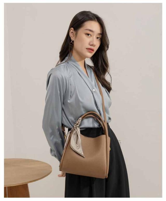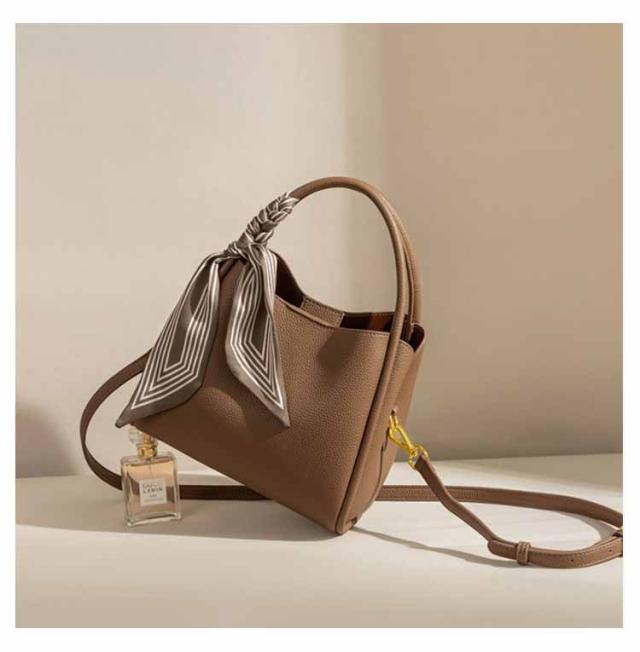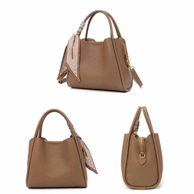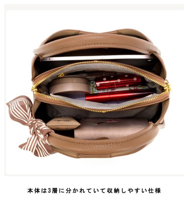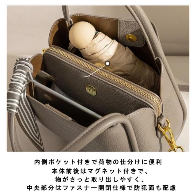 | 見た目以上に荷物の収納ができるコンパクトなショルダーバッグ。 本体は3層に分かれていて収納しやすい仕様 本体前後はマグネット付きで、物がさっと取り出しやすく、中央部分はファスナー開閉仕様で防犯面も配慮 内側ポケット付きで荷物の仕分けに便利 底ビョウ付きで自立可能、きちんとした印象です。 シボ感のある風合いの良いフェイクレザーを使用。 普段使いはもちろん、フォーマルとしても取り入れやすいデザインです。 | |