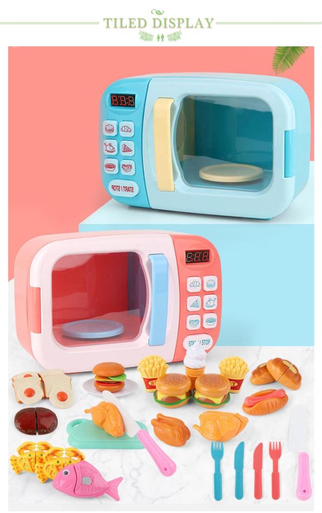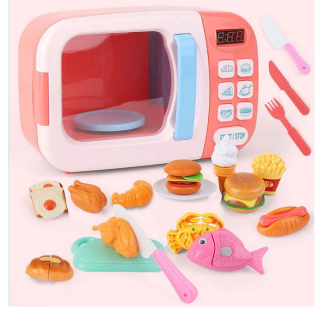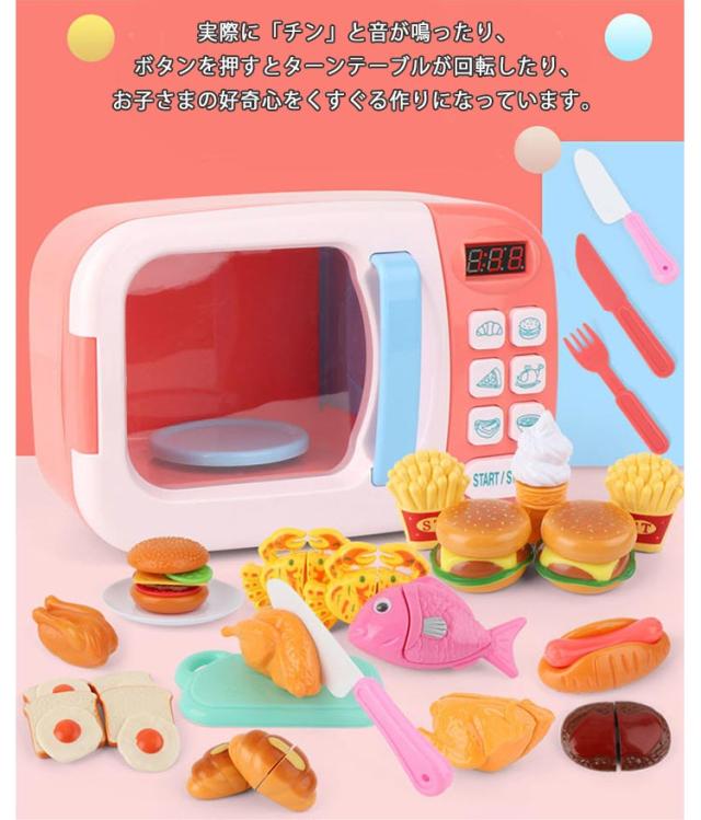 | 【電子レンジのおままごとセット】 本物そっくりな電子レンジでおままごとを楽しもう! 実際に「チン」と音が鳴ったり、ボタンを押すとターンテーブルが回転したり、お子さまの好奇心をくすぐる作りになっています。 パパやママがご飯を作っている姿を見て実際に「やってみたい!」というお子様の思いを叶えてあげることができます。 | |