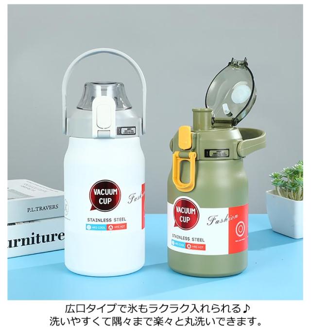 | 1000ml 1200ml 1500ml 1800ml 真空二重 保温・保冷 ステンレス真空二重構造だから保温・保冷力が高く、飲み物の温度を長時間キープします! 冷たい飲み物でも結露しない、熱い飲みのもでも持ちやすい。 広口タイプで氷もラクラク入れられる♪洗いやすくて隅々まで楽々と丸洗いできます。 持ちやすいハンドル付きでスポーツジムへ通っている女性も手軽に持ち歩きやすい | |