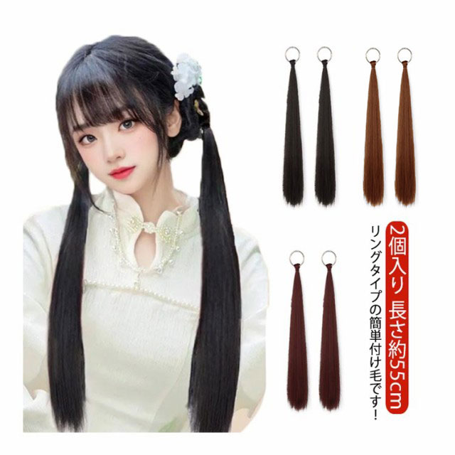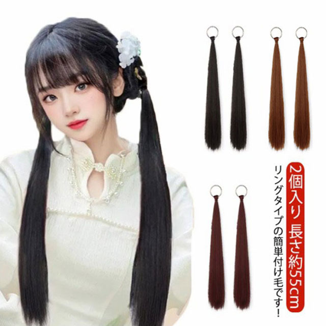 2個入り ポニーテール ウィッグ リング式 ポイントウィッグ ヘアアクセサリー エクステ ストレート ポニーテールウィッグ 部分ウィッグ つけ毛 簡単 ワンタッチ ヘアアレンジ おしゃれ エクステンション 結婚式 コスプレ 推し活 大人かわいい 自然
