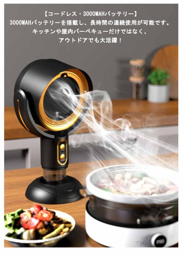 卓上レンジフード 換気扇 コードレス 小型 レンジフード 卓上吸煙機 焼肉 テーブル換気扇 ミニポータブル換気扇 低騒音 2段階風量調節 フィルター水洗い可 空気清浄機 マイナスイオン 卓上換気扇 煙 油 油煙分離 超静音 テーブルクッキング BBQ キャンプ 送料無料