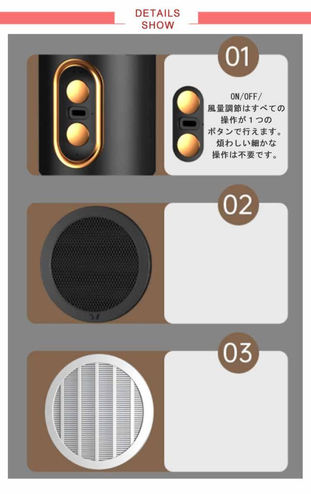 | サイズについての説明 | 電池容量:3000mAh 本体サイズ:21*35*15cm 風力:2段階調節 |