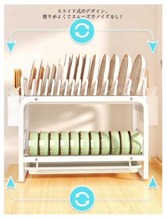 キッチン収納 引き出し 水切りラック スリム ディッシュスタンド ディッシュラック 水切り トレイ付き 食器棚 水切りラック シンク下 収納 食器 引き出し 収納 キッチン ラック 皿立て 水切り お皿 立て 収納 茶碗 スタンド おしゃれ 賃貸 食器ラック