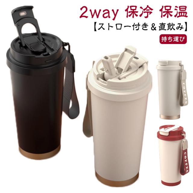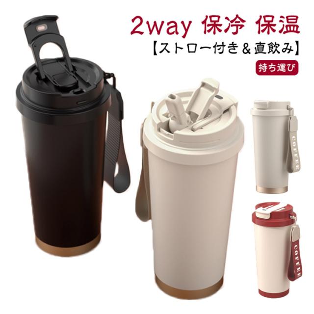 タンブラー ストロー付き 水筒 2way 直飲み 保温 保冷 蓋付き 持ち運び 530ml コーヒー マグ おしゃれ ステンレス製 オフィス こぼれない 真空断熱 コーヒーカップ 溢れない ドライブ アウトドア 在宅ワーク 女性 男性 ギフト