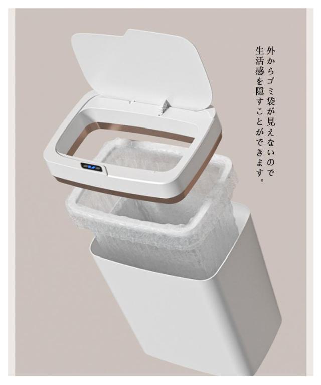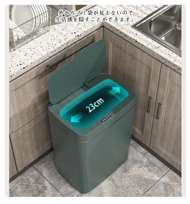 ゴミ箱 センサー 自動開閉 ゴミ箱 隙間 センサー開閉 人感センサー ダストボックス 家庭用 おしゃれ スリム ふた付き 自動ゴミ箱 見えない スクエア 角 乾電池式 フタが手に当たらない ニオイ漏れにくい 縦型 キッチン リビング 大容量