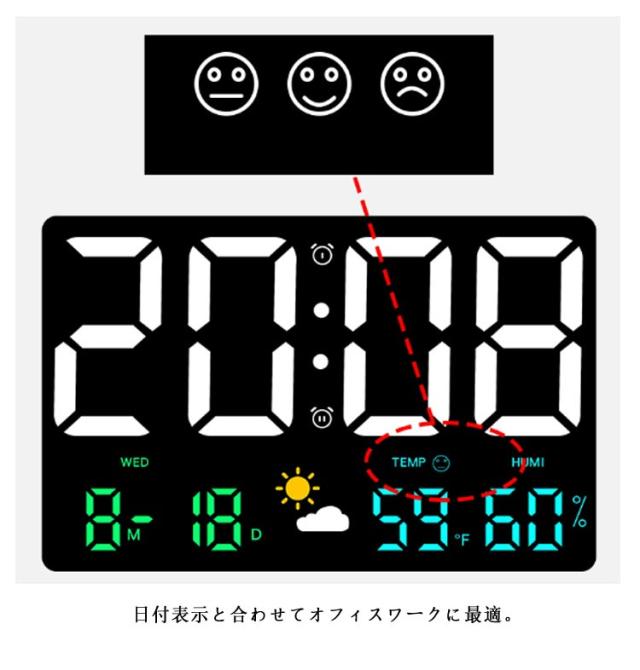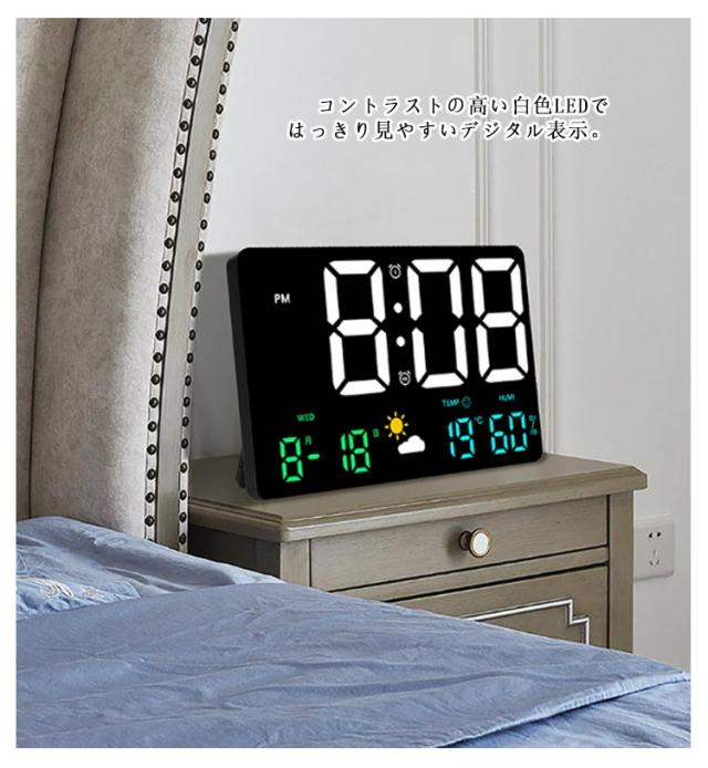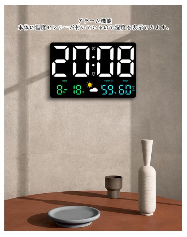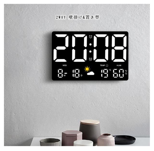 壁掛け時計 デジタル時計 LED 日付 温度表示 2way センサー 置き時計 目覚まし時計 リビング 寝室 アラーム LED時計 インテリアクロック 見やすい ウォールクロック 明るさ5段階調節 カレンダー 時刻 湿度