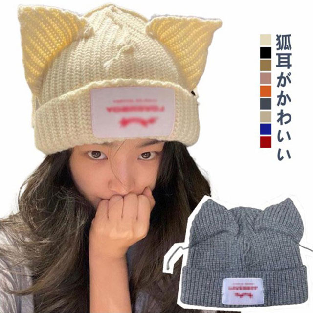 ビーニーニット帽 ビーニー ニット帽 浅め ニット帽 耳付き 猫耳 狐耳 ニットキャップ ニット帽 猫耳 猫 レディース メンズ キッズ ねこ ネコ コスプレ クリスマス プレゼント 仮装 防寒 通学 通勤 インスタ映え Youtube 送料無料