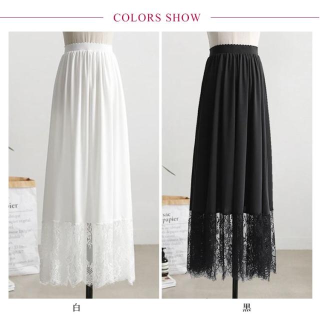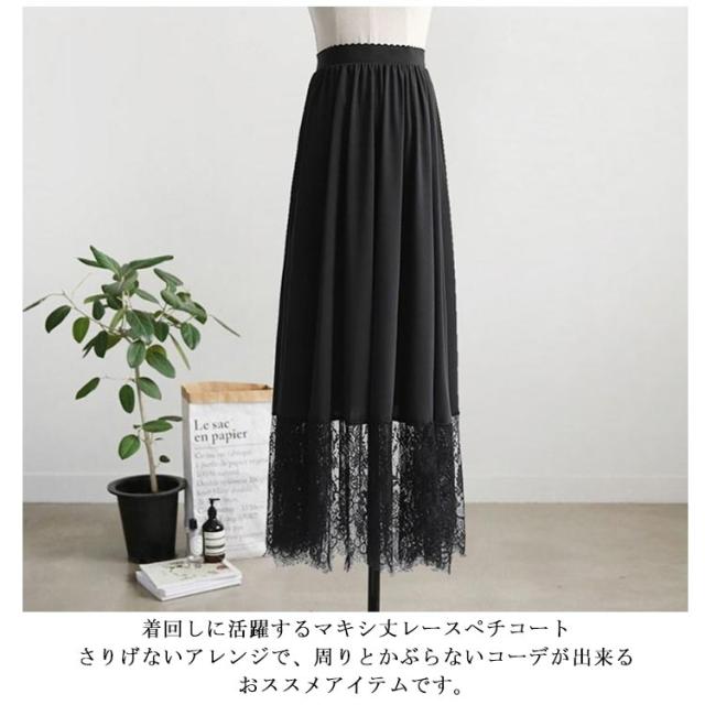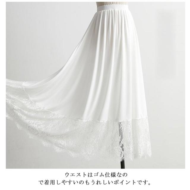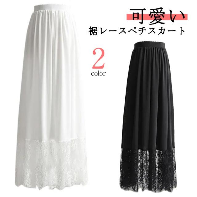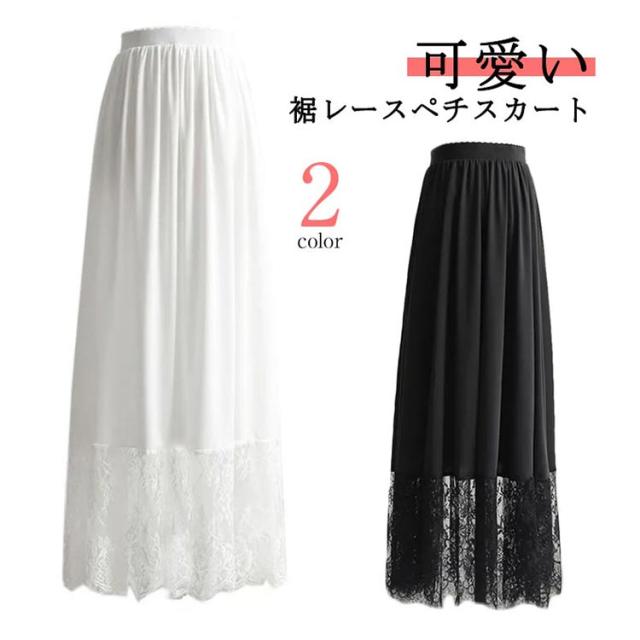 ペチスカート スカート レース ペチコート 裾レース マキシ丈 インナー アンダースカート 大人 ガーリー 体型カバー ゆったり 重ね着 見せる 透けない 裾レースペチスカート 20代 30代 40代 50代 春夏 大きいサイズ 白 ホワイト 黒 ブラック