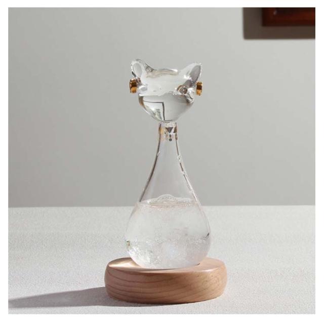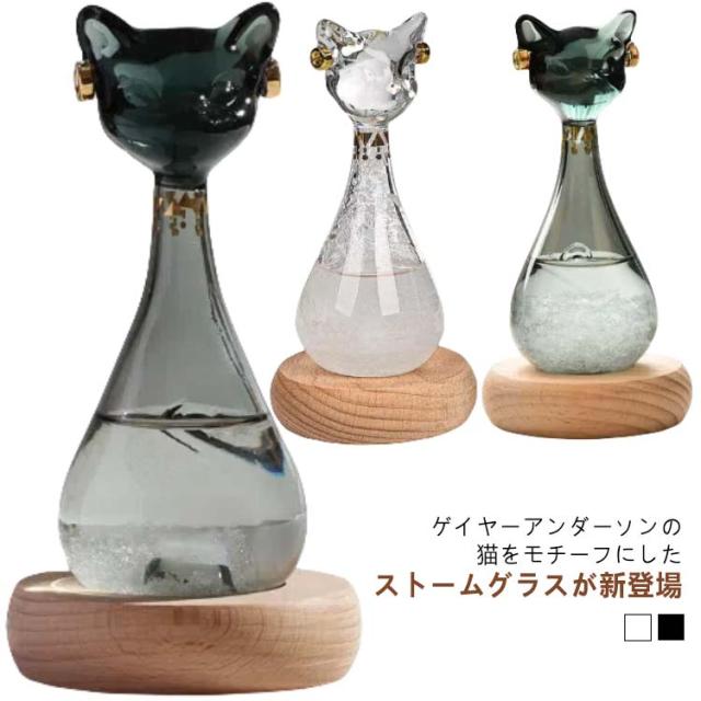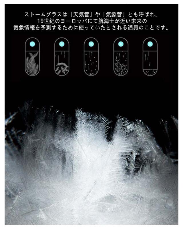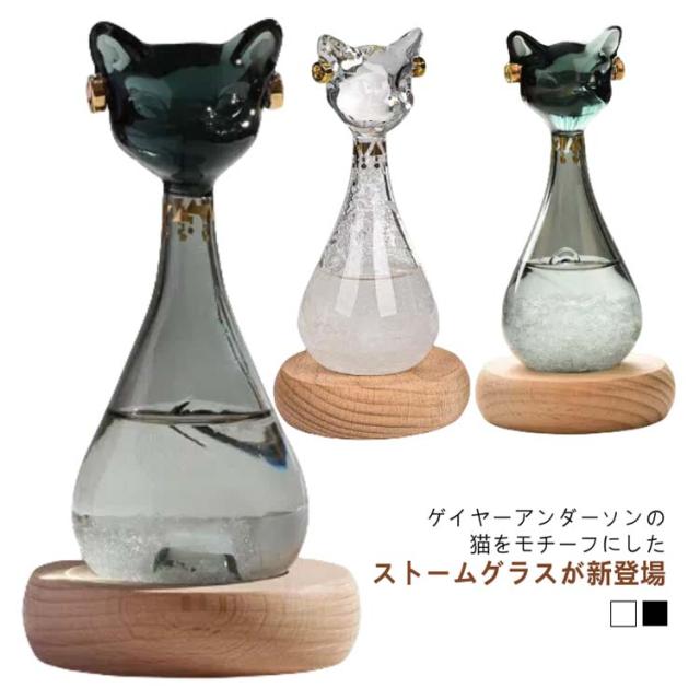 | ゲイヤーアンダーソンの猫をモチーフにしたストームグラスが新登場! ストームグラスは「天気管」や「気象管」とも呼ばれ、19世紀のヨーロッパにて航海士が近い未来の気象情報を予測するために使っていたとされる道具のことです。 透明なガラス容器に、エタノール・塩化アンモニウム・酸化カリウムなどの化学物質を溶かした混合液が詰められており、天気によってさまざまな形の結晶があらわれる。 ・ 天気が晴れるなら、結晶が底に沈み、液体は澄みきる。 ・ 雨が来る前は、小さな結晶が徐々に増えて、透明の溶液中を浮遊する。 ・ 雪のときには、大きめのシダ状の結晶が生じる。 ・ 嵐の日には溶液は濁り、筋状の結晶が生じる。 現代ではお部屋を幻想的に彩るおしゃれなインテリアオブジェとして注目されています。季節によって景色が変わるように、日々変化する結晶の様子をお楽しみください。 自宅用にはもちろん、プレゼントする際にもおすすめです。 | |