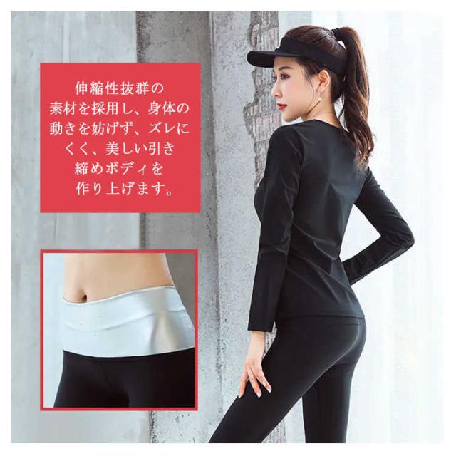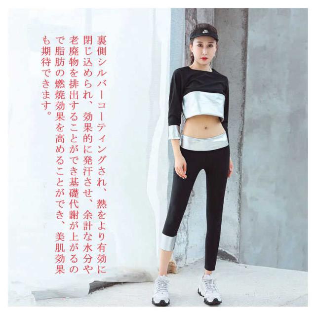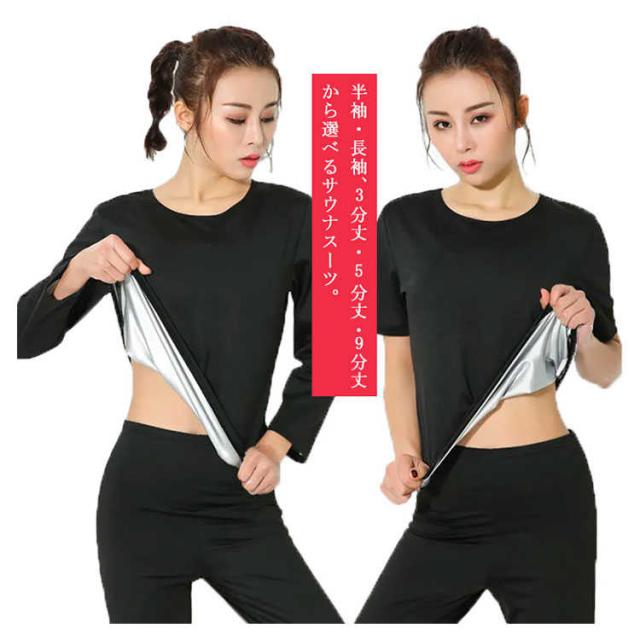 | 半袖・長袖、3分丈・5分丈・9分丈から選べるサウナスーツ。 着るだけでダイエット!熱を逃さず、軽い運動でもシェイプUP効果抜群のサウナスーツ。 裏側シルバーコーティングされ、熱をより有効に閉じ込められ、効果的に発汗させ、余計な水分や老廃物を排出することができ基礎代謝が上がるので脂肪の燃焼効果を高めることができ、美肌効果も期待できます。 伸縮性抜群の素材を採用し、身体の動きを妨げず、ズレにくく、美しい引き締めボディを作り上げます。 ジョギング、ウォーキング、ヨガなどスポーツだけでなく、家事、お買い物、お散歩など着るだけで数倍のダイエット効果! | |