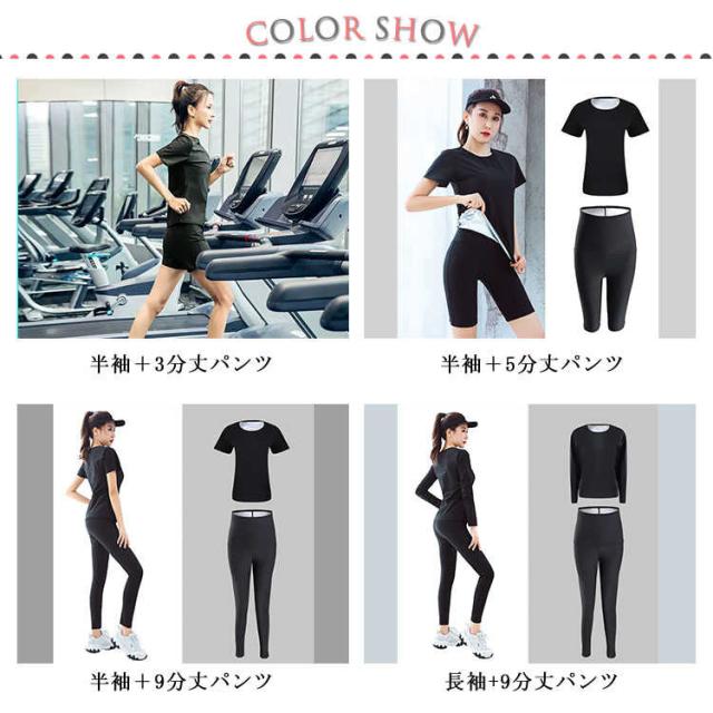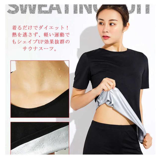 サウナスーツ ダイエットウエア サウナ 半袖 シャツ 5分丈 9分丈 パンツ 上下セット ホットシェイパー 発汗ウェア 送料無料 シェイパー 加圧スパッツ ストレッチ 2021新作