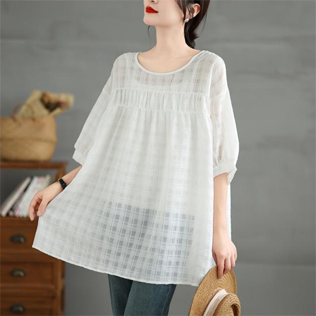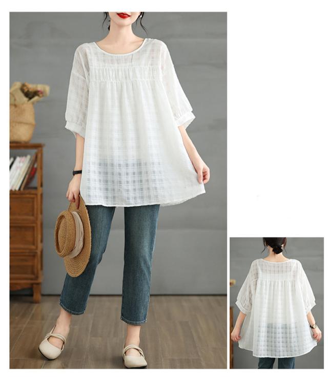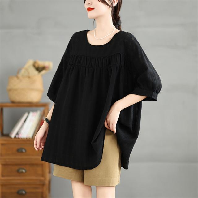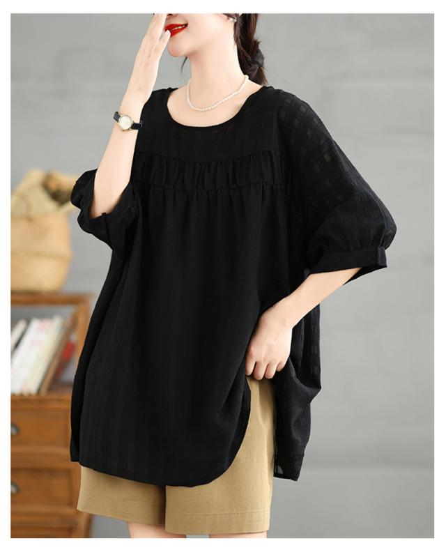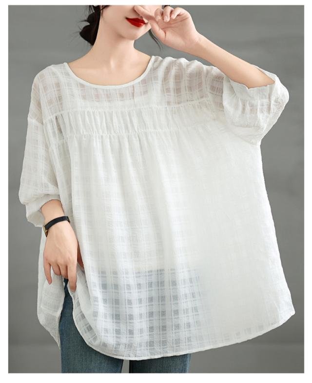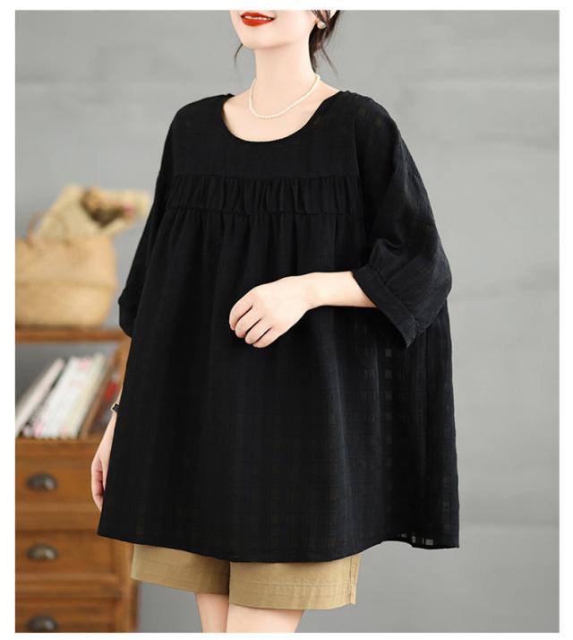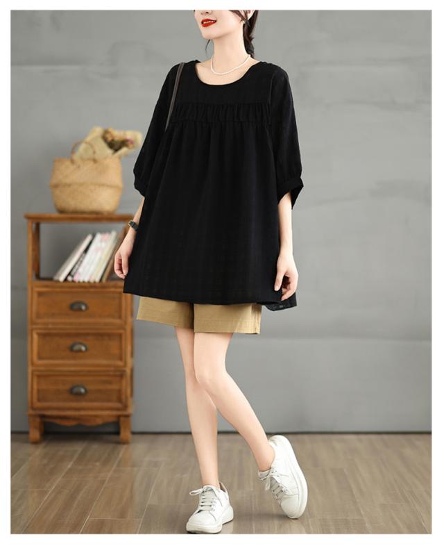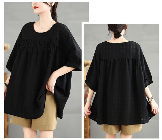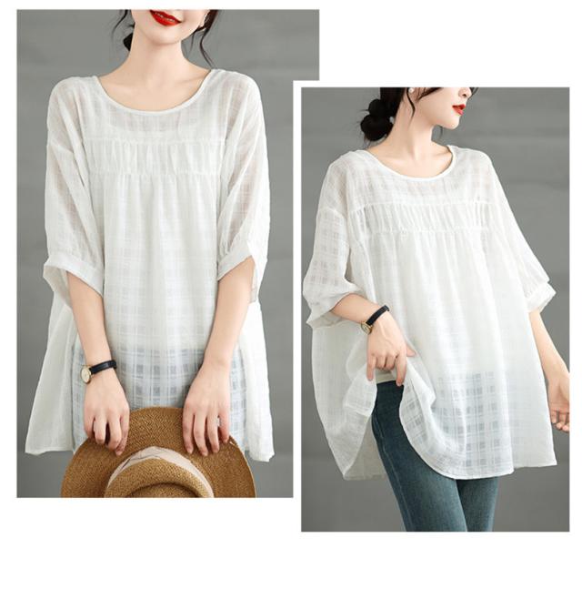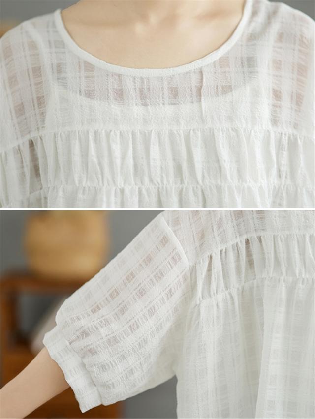 夏シャツ レディース 夏服 半袖 Uネック さりげなく体型カバー きれいめスタイルに相性抜群 大きいサイズ すっきり見せ ふんわりと広がるシルエット