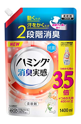 大容量ハミング消臭実感 ヨーロピアンジャスミンソープの香り 詰め替え 1400ml 動くたび、汗をかくたび2段階消臭