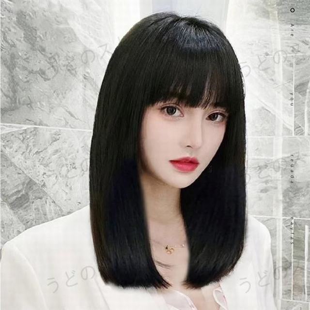ウィッグ セミロング 分け目自由 小顔効果 韓流 スタイル変更 ストレートヘア 清楚系 女装 カジュアル ナチュラル ネット付き