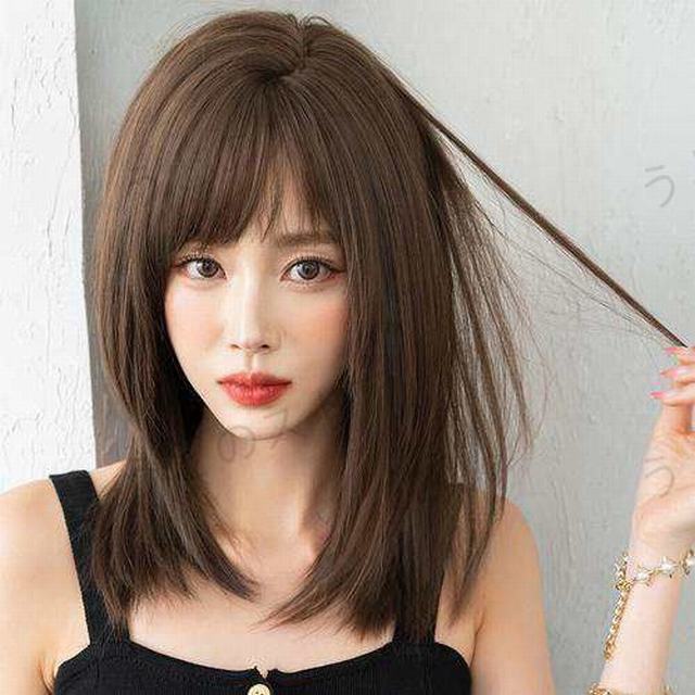 ウィッグ フルウィッグ セミロング ストレートヘア レイヤー ナチュラル 立体感 小顔効果 気分転換 清楚系 つむじ自然 女装 ネット付き