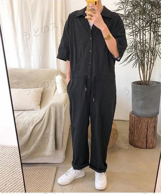 オーバーオール オールインワン メンズ つなぎ ツナギ おしゃれ 無地 折襟 5分丈 カーゴつなぎ