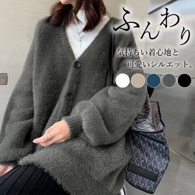 カーディガン レディース カーデ モヘアタッチ シャギー アウター バルーンスリーブ 秋冬 ニットカーディガン