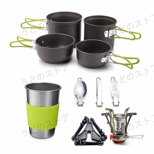 【 商品仕様 】材質:アルミ 重量: 約970g 使用人数:2〜3人【 セット内容 】ポット(大)*1,ビッグカバー*1,ポット(小)*1,小さなカバー*1,カップ*1,スプーン*1,テーブルナイフ*1,フォーク*1,バーナー*1,小さな布バッグ*1,メッシュバッグ*1【 防熱設計 】 防熱する為、シリコン材で作って蓋とハンドルカバーは、偶発的なやけどを防がられます、鍋を加熱した状態でも、ご安 心に利用いただけます。 【折りたたみ式 】 取っ手部分を折りたたんで重ねれば超コンパクトであるキャンプクッカーです。