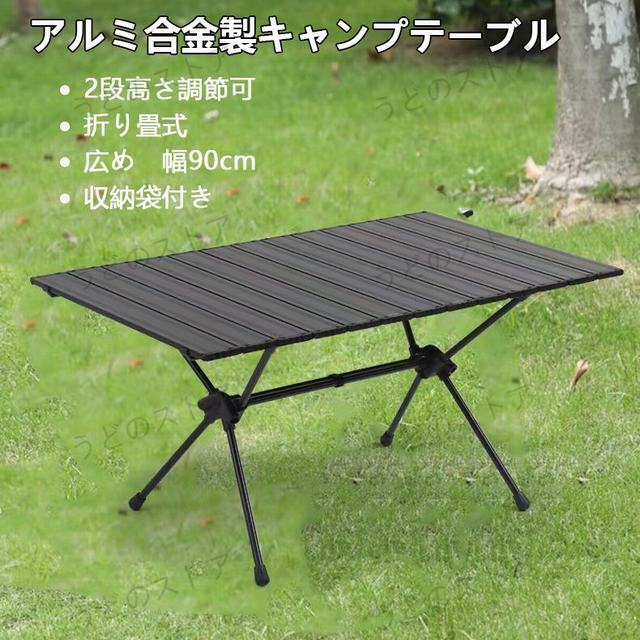 キャンプテーブル アルミ合金 ロール アウトドア 折畳式 軽量 アウトドアテーブル ロールテーブル 高さ調節可 コンパクト 90cm 収納袋付き