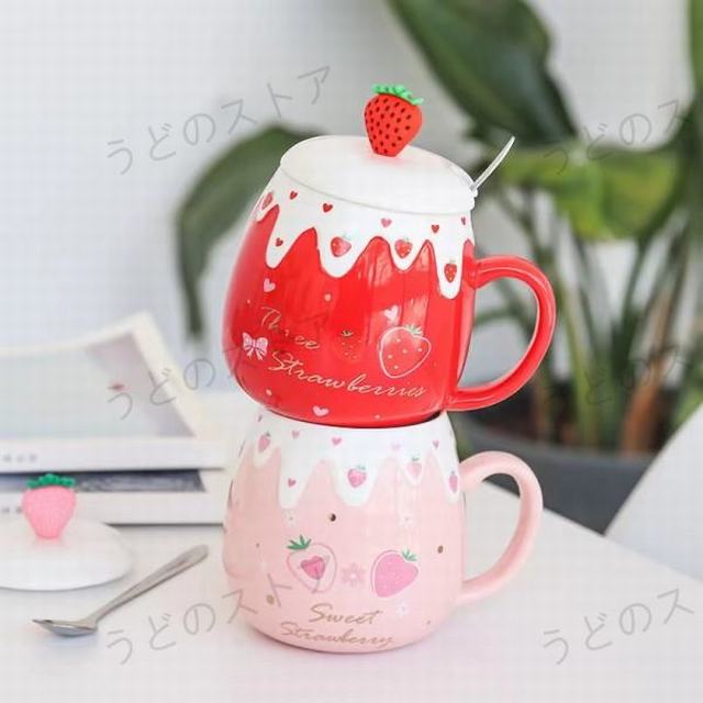 コーヒーカップ いちご マグカップ 陶器 グッズ お茶カップ かわいい おしゃれ 仕事用 贈り物 耐熱カップ 人気