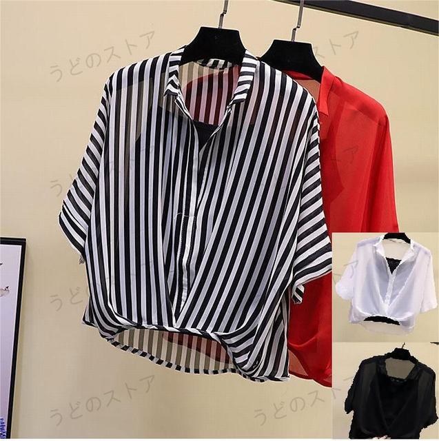 シャツブラウス シフォンブラウス シフォン キャミソール 2点セット Vネック レディース トップス