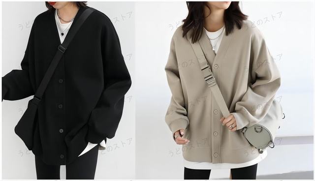 スウェット カーディガン レディース 前開き Vネック トレーナー トップス ビッグシルエット 秋 春 長袖
