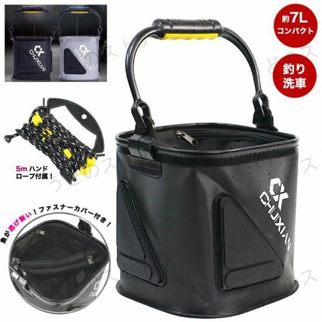 バケツ 釣り 折りたたみ 7L バッカン 蓋付き 5mロープ付き 洗車 水汲み 釣具 釣り具 魚釣り 海釣り 川釣り フィッシング 餌入れ キャンプ おしゃれ 軽量