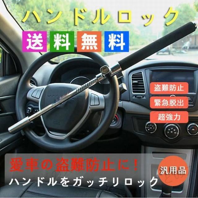 【盗難防止】車の盗難防止に大活躍!!ステアリングセキュリティーロックです。貴方の愛車が狙われる一台にならないためにお勧めのアイテムです。【サイズ】全体 44cm-71cm ロック部分:31cm 重量 1.5kg ハンドルに合わせて長さを調節できるのでほとんどの車でご使用いただけます。 【強度抜群】本品は切断困難な硬化鉄鋼を使用しているので強度も抜群!【スペアキー3本】本商品の鍵はメーカー、合鍵業者でも複製困難な特殊形状キーです。紛失にはご注意願います。 【1台3役】盗難防止対策として有効ですが、もしもの時は緊急脱出用ハンマーとしてや犯罪に巻き込まれそうになったら護身用としても活躍します。【取り付け方法】取り付け方法は簡単、女性でも装着しやすい! STEP1:まずは伸縮アームを引き開ける。 STEP2:ロックの左端をハンドルに挟む。 海外インポート品なので,国産商品より細かいところが不完璧の場合がございますが。商品の使用には問題がございません。上記の点で返品?交換の理由になりませんので,ご理解の上ご購入ください。