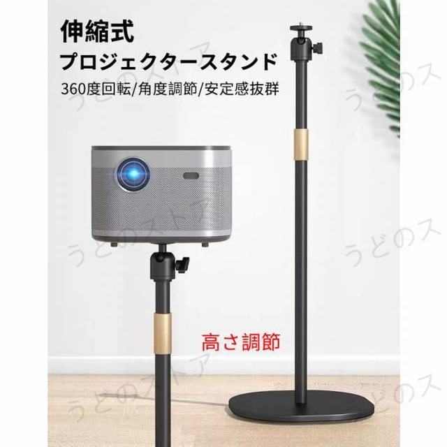 こちらの商品は伸縮式プロジェクタースタンドです。接続口:1/4ネジ(約6mm)ご購入の前にプロジェクターのネジ穴サイズをご確認ください。360度角度調整可能です。60-120cmまでの高さが調整可能です。素材:炭素鋼+ABS耐荷重約5kg【安定感抜群?安定品質】:金属製の柱と重い台座を使用したスタンドは、耐久性と強度に優れている。台座の底にEVA素材の滑り止めマット付きで、衝撃吸収できて卓に傷をつける心配もいりません。【360°回転で角度自由調整】360°回転可能な自由雲台は場所や角度に合わせて自由自在に調整。
