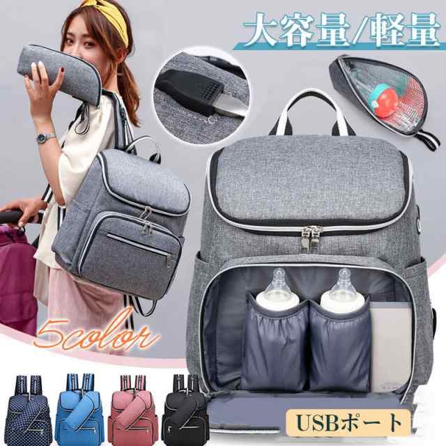 マザーズバッグ リュック USBポート 保温 保冷 撥水 大容量 ナイロン 軽量 ママバッグ レディース オムツ 哺乳
