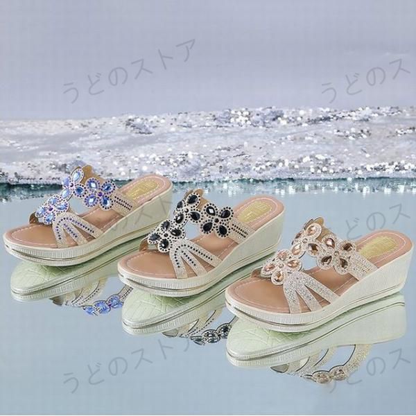ミュールサンダル レディース 履きやすい 夏サンダル ミュール ウェッジソールサンダル キラキラ オシャレ 厚底靴シューズ 通勤 サポサンダル 美脚