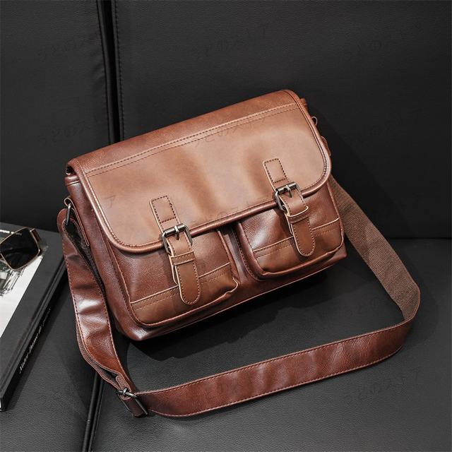 メンズ ショルダーバッグ ビジネス ポケット多数 小物入れ デイリー 通勤 ipad 仕切り 自転車 軽い レトロ風 横型 コーヒー