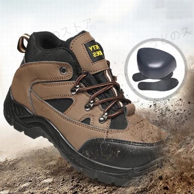 メンズトレッキング アウトドアシューズ 安全靴 釘踏み抜き防止 鋼鉄先芯 スニーカー ブーツ 厚底 ショートブーツ