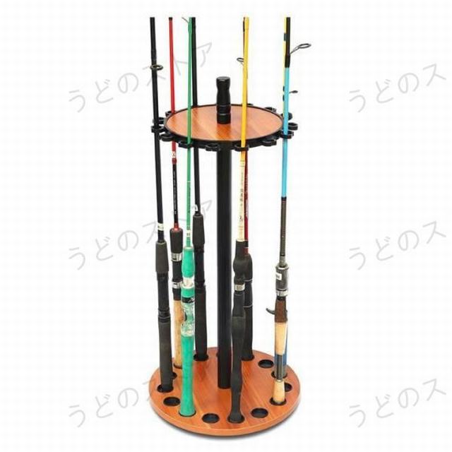 ロッドスタンド 円形ロッドスタンド 回転でき 15本釣竿収納 ウッド製 ロッドホルダー 竿立て (ロッドスタンド)釣りロッドスタンド:円形ロッドスタンドは省スペースと大収納本数。直径35CMの円形ベースが場所にとらわれず、ガレージ、廊下、玄関、部屋の隅。あらゆる場所でロッドをきちんと収納します。ウルトラ省スペース設計:釣りロッドスタンドの情報:面積ー約0.1m2(円形直径:35cm)高さー73cm。最大収納本数:15本釣竿収納、リールを付けってままでも収納可能。自慢のロッドを収納しながらディスプレイできる。 釣りロッドスタンド、釣竿収納ラック。材料:高級感とコスパを考えば 木製ロッドスタンド が良い。MDF板、木製ロッドスタンドはどんな釣り竿も美しく映えます。ロッドと触れる部分に保護材(はソフトなゴム)を付いてます。中柱はステンレスチール製です。愛竿をの収納、ディスプレイに適してます。