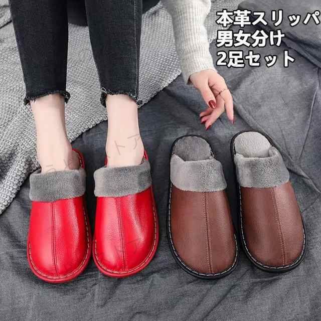 本革スリッパ 室内 2足セット レディース メンズ ハウススリッパ おしゃれ 室内履き 滑り止め 無地 秋冬春 部屋用 オフィス用 ルームシューズ 来客 快適 防水