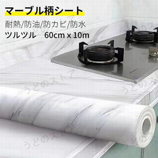 壁紙シート 大理石シール マーブル つるつる 壁紙シール 耐熱 防油 防カビ?キッチン用 家具 台所 リビング DIY 60cmx10m