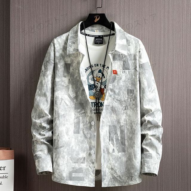 柄シャツ メンズ 長袖 カジュアルシャツ ワイシャツ ボタンシャツ 開襟シャツ 春 秋 トップス 長袖シャツ