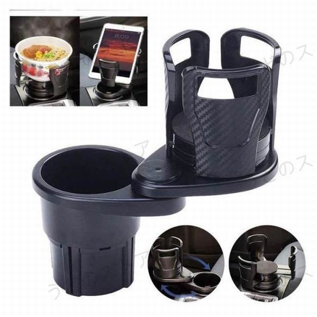 車用 ドリンクホルダー 2in1 多機能 車載 カップホルダー 360回転 調節可能 7.4-15cm ボトル+カップに対応 両用 車載ホルダー 回転調整可能