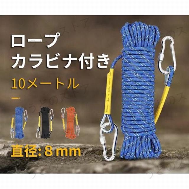 登山用品 クライミングロープ ロープ アウトドア 登山 消防 10メートル クライミング カラビナ付き フックボルダリング クライミングロープ ロープ ザイル