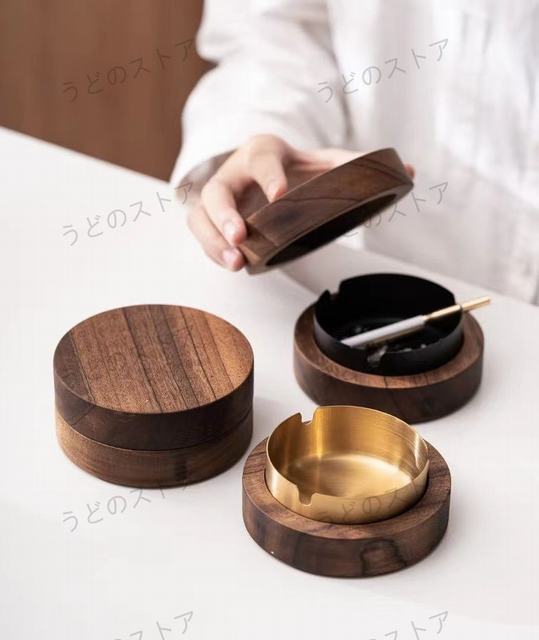 サイズ:掲載写真をご参照ください。木製×ステンレスの融合 洗練されたモダンスタイリッシュデザイン。シンプルなのでどんなインテリアにも馴染みます。手触り感の良い天然素材。木目が優しく耐久性に優れたクルミ材採用。インテリアに温かみをプラスします。耐火性、耐水性に優れたステンレス。外して丸洗い可。吸殻を捨てる時に逆さにしても磁石でステンレスは外れません。洗うとき時以外はずす必要がありません。フタ付なので、防臭、清潔感ある空間をキープ。滑り止め付きなので卓上で滑らない。タバコが落ちにくいU字溝付。アイコス、グローにもオススメ。開口部が広い設計なので吸殻を捨てやすいです。和洋どちらのインテリアにもマッチ。レストラン、ホテル、バー、カフェ等様々なシーンで大活躍。愛煙家へのギフトにもオススメ。■注意点※天然素材の為、クルミの木目デザインや色には個体差があります。写真とは色味や木目が異なる場合がございますので予めご了承下さい。