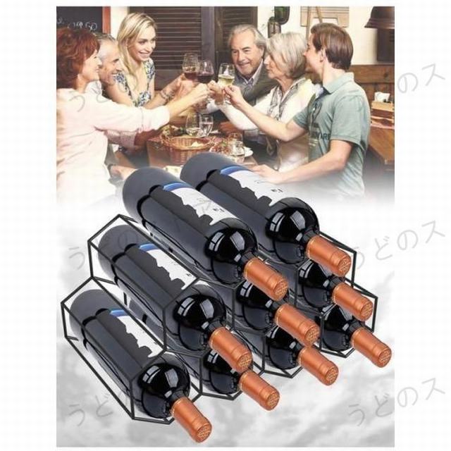 金属製 ワインラック ワインホルダー 赤ワイン棚 9本 積み重ね式 収納 ワインストレージ インテリア装飾 パントリー ワインセラー