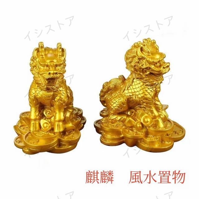 サイズ:画像をご参照ください。材質 樹脂製麒麟(きりん)トラブルを沈静化させ、静の気を持ち、物事を安定させる力があります。麒麟は中国の想像上の幻獣で「龍」と並ぶほど力のある生き物とされていて、「吉祥仁慈(きっしょうじんじ)」を具現する瑞兆の神獣です。中国で皇帝になる人物が天命を授かるときに祝福を与えるために姿を現すとされています。鹿の胴体、馬の足(蹄)、全身は鱗に覆われ、頭部には角を持っています。麒麟は、平和?平穏のシンボルです。収入の不安定?家庭不和?ビジネスでの人間関係のトラブル?夫婦関係の改善にパワーあり風水において麒麟は、あらゆる禍事を消し、周りの気を安定させてくれます。玄関?リビング?などにおくと平和な生活をもたらしてくれます。通常は雄が(麒キ)、雌が(麟リン)とペアで麒麟と呼称します。