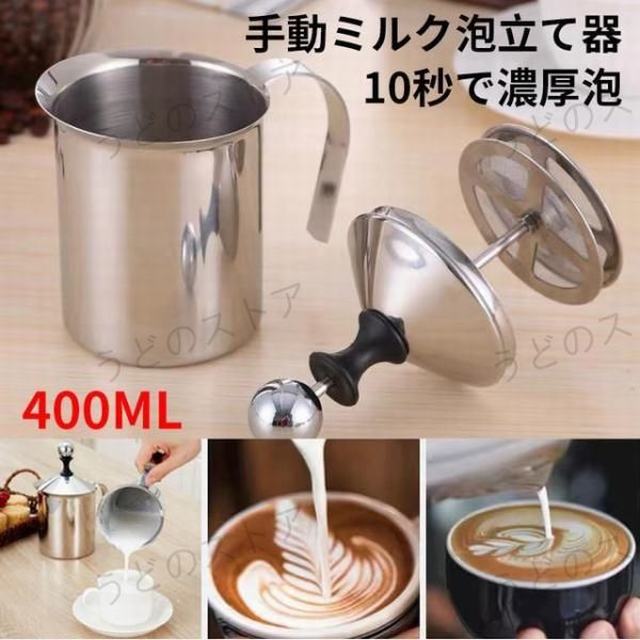 手動泡メーカー ミルク泡立て 手動ミルク泡立て 器泡立て ステンレス ダブルメッシュ 400ml