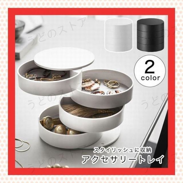 小物入れ アクセサリー 収納 シンプル スタイリッシュ 回転式 4段式 フェルトマット付き ホワイト ブラック 360度回転式 フェルトマット