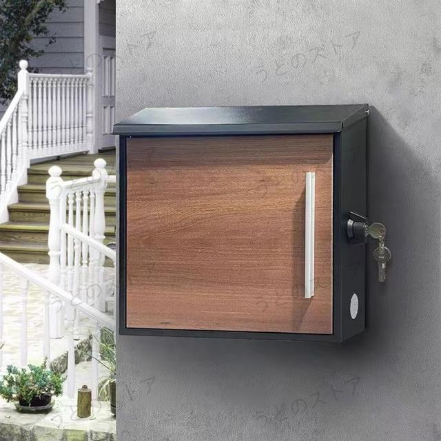 商品サイズ:掲載写真をご参照ください。材質/本体:スチール亜鉛めっき処理&樹脂塗装 商品内容: 本体、ネジ 鍵閉める方法: ひねり 鍵でロック扉口はおしゃれな木目調になっておりますが、他の部分と同じなスチール亜鉛です。壁掛けポストなので,壁に穴あけの必要になります。大きな投函口と取り出しすい扉口でメール便やクリックポストなどでも入れだす可能です。投函口の上に蓋がありますので,雨の侵入を防ぎます。亜鉛めっき処理&防錆効果高い樹脂塗装の二重保護を施しております。サビにくいので長くお使い頂けます。厚みのあるカタログや、ビジネス封筒も角2まで入る広い投函口。収納力も抜群なので郵便物が沢山届いても大活躍です。