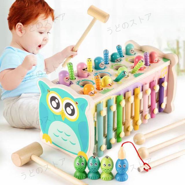 知育玩具 ハンマートイ 積み木 木製おもちゃ マルチな知育玩具 魚釣り 回せる歯車 虫捕り 叩きピアノ 車 男の子 女の子 誕生日